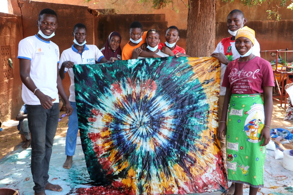 A l’issue de cette formation, les élèves bénéficiaires ont appris à teindre les pagnes sur plusieurs modèle. ils sont invités à faire bon usage des acquis de cette formation et à les mettre en pratique.