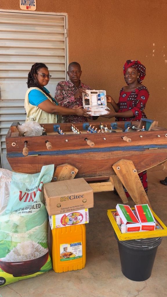 Ce don, composé de jeux et de vivres, est destiné aux enfants du Centre d’accueil et de transit Seyo. Il permettra aux enfants du quartier qui fréquentent le centre de bénéficier d’un espace ludique et sécurisé, tout en contribuant à la restauration des enfants pris en charge régulièrement par l’AJBF.