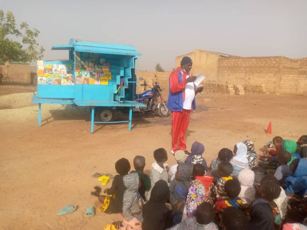 Afin de rendre ces ressources accessibles à un plus grand nombre, l’AJBF s’est dotée d’une biblio-moto, grâce à l’appui de son partenaire ASMAE dans le cadre du projet PPEE. Cette bibliothèque mobile sillonne les quartiers de la ville de Ouahigouya, rapprochant ainsi les livres des enfants, même dans les zones les plus reculées.