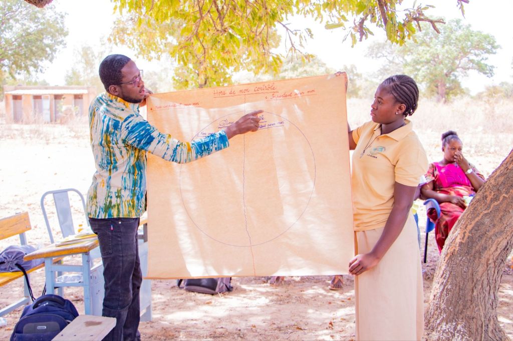 À Guiba, autre commune d’intervention, le suivi s’est poursuivi au lycée départemental avec deux activités phares : une séance de lecture et monitoring ainsi qu’un exercice issu de la boîte à outils de résilience intitulé Se prendre en main. Les élèves y ont défini eux-mêmes ce qui relevait de leur contrôle et ce qui ne l’était pas, un apprentissage destiné à les aider à dépasser leurs limites et à renforcer leur autonomie.